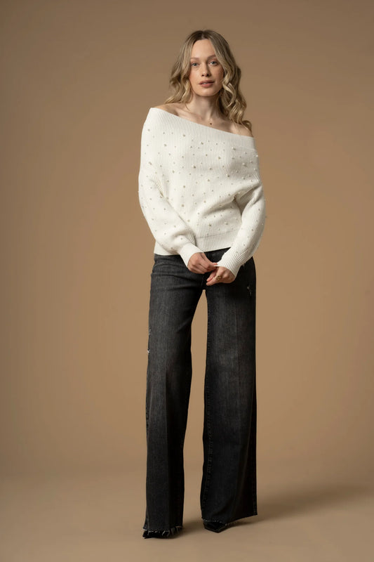 KOKKA - MAGLIA CON SCOLLO BARDOT E PERLE - MAGLIA M/L MARIVEL