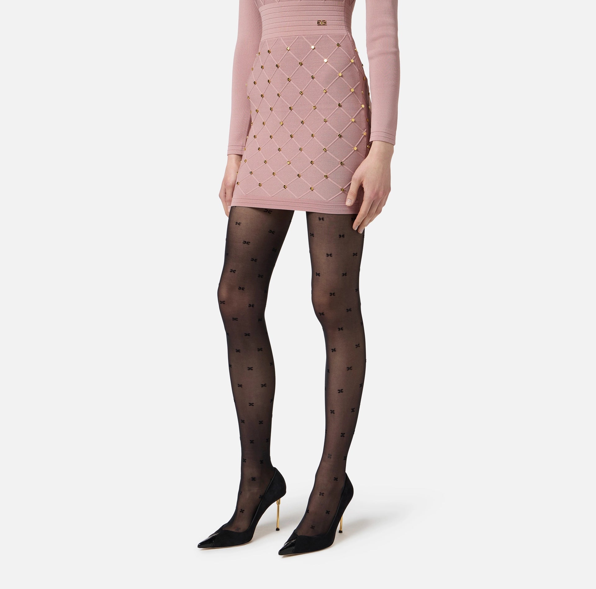 Collant personalizzati con fantasia logo, realizzata con lavorazione flock. Elastico in vita.