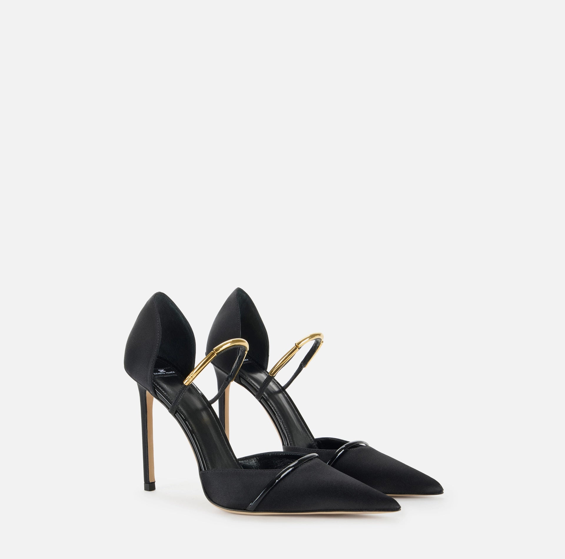 ELISABETTA FRANCHI - D'Orsay in raso con dettaglio gioiello