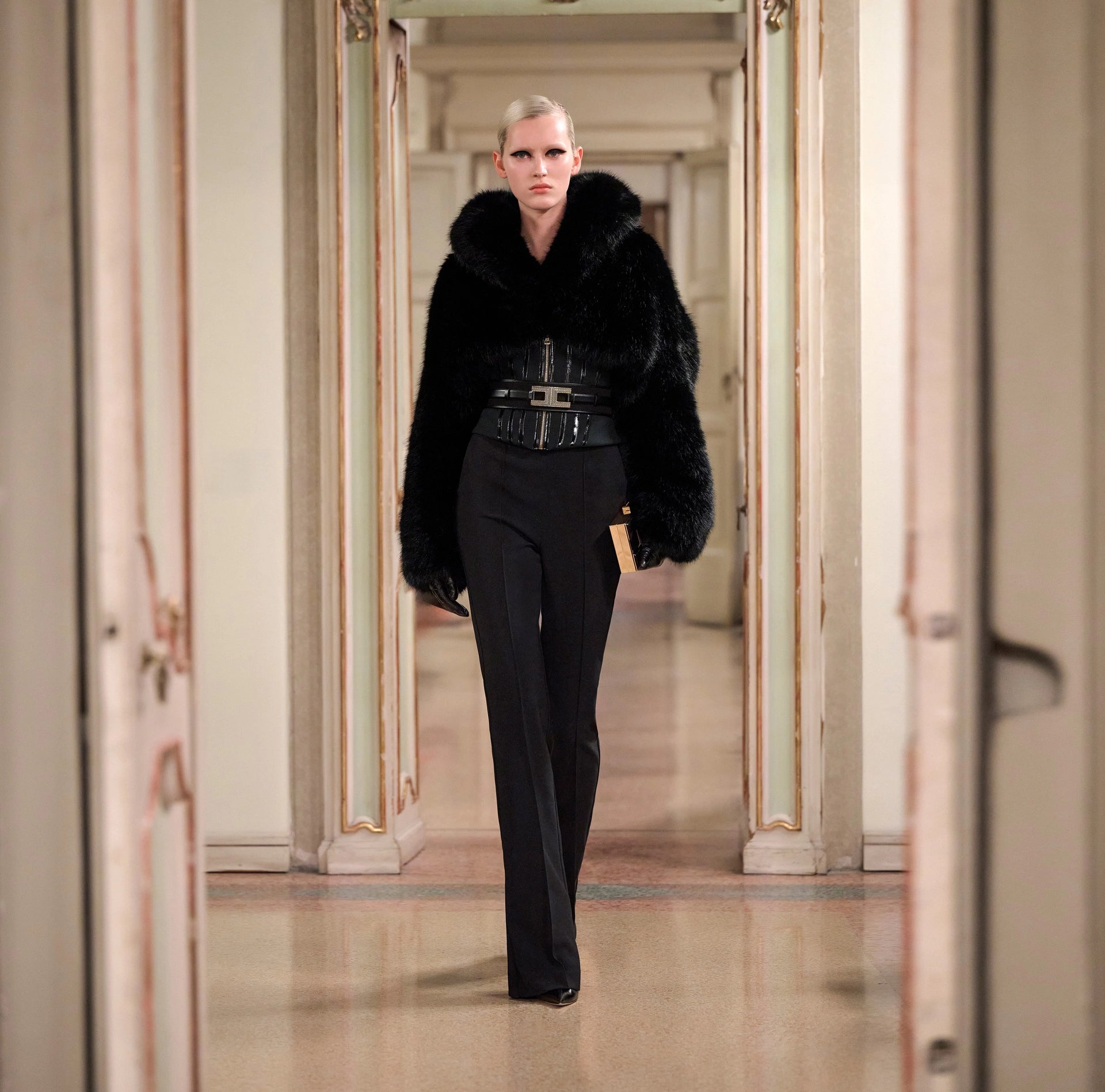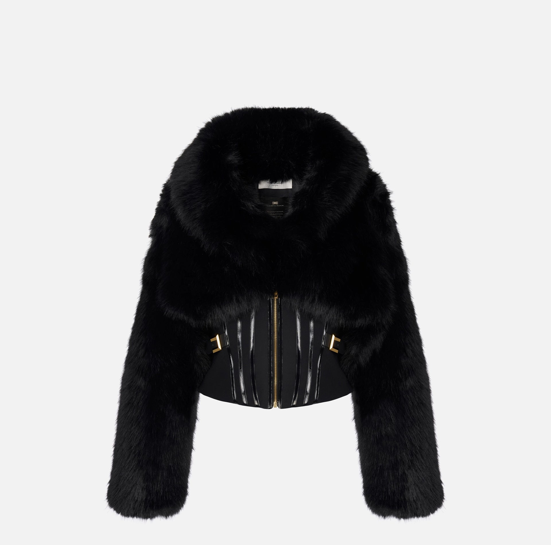 ELISABETTA FRANCHI - Giubbotto con effetto pelliccia e doppio crêpe