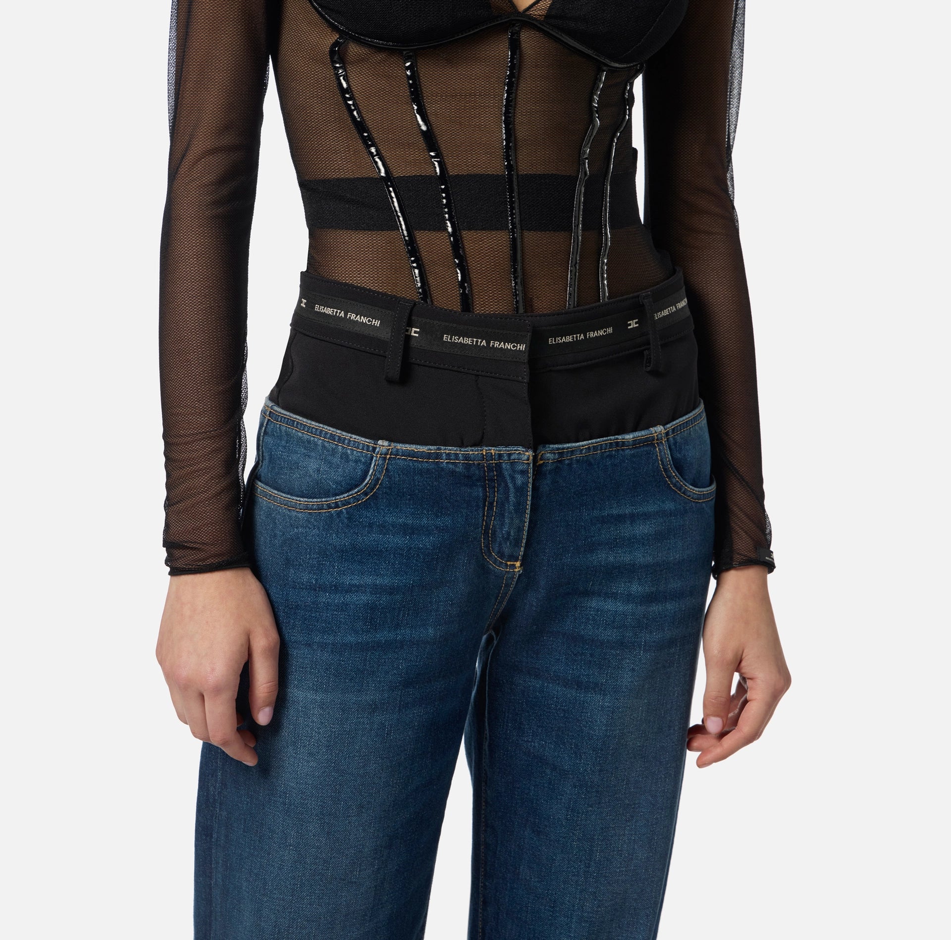 ELISABETTA FRANCHI - Pantaloni in denim e crêpe leggero